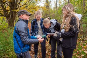 In the Le Moyne woods, our Dolphins study the effects of noise pollution on local bird populations, examine the distribution of snakes, and analyze the diversity of wildlife along the trails, thanks to the guidiance of Jason Luscier, Ph.D., associate professor of biological and environmental sciences.