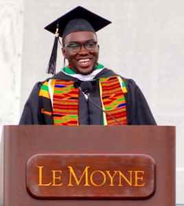 Ten years ago, I was deciding where I would lay the next crucial layer of my life鈥檚 foundation. Born as the first child to West African immigrants, I was the first of my siblings and the first of my family in the States to go away to college. The terrain was new and all eyes were on me. Like many who are the first, there were expectations by some of where I should go, what I should study, and who I should become. I learned not to capitulate to those ideas, but to instead choose for myself and do so wisely. I chose Le Moyne. I was a reserved young man, but ready for the challenge to grow outside of myself, grow past what I knew, and become more, trusting that Le Moyne College was where I could do just that. Le Moyne鈥檚 mission and her Jesuit values were evident to me through every step of my application and decision-making journey. It felt right鈥 it felt like home.
