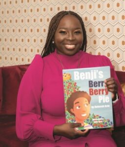 And so, the Le Moyne graduate, who joked that she鈥檇 gone from 鈥渉opping from country to country鈥 to 鈥渉opping from (her) couch to her desk,鈥 began baking pies. First apple. Then strawberry-rhubarb. Then she began experimenting with making a lattice pie crusts. She challenged herself to bake a pie a month. A business administration major who spent much of her career thinking in strategic, concrete terms, she relished the opportunity to unleash her energy in new and unexpected ways. Soon she found herself hitting on another idea: What if she used her experiences in the kitchen as the basis of a children鈥檚 book, one that would encourage children to be creative and adventurous, while also introducing them to a critical life skill 鈥 cooking? Just like that, 叠别苍箩颈鈥檚 Berry Berry Pie was born. The story, which was published by IngramSpark in the fall of 2021, chronicles the adventures of the title charac- ter, a child with a passion for inventing things(including pie). The protagonist is based loosely on Acio鈥檚 two brothers, an engineer and an engineering student.