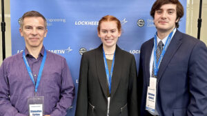 This spring Bush and Carinci participated in the sixth-annual Lockheed Martin “Ethics in Engineering Competition,” which was held in Bethesda, MD. In each round of the competition, teams competed in pairs with each school representing one of the stakeholders in a realistic business case. Their goal was “not to win by forcing the other team to lose, but to take the lead in coming up with a win-win solution” and to “demonstrate an understanding of the ethics, business and engineering aspects of the case.” Bush and Carinci, who were accompanied by faculty adviser Stamatios Kyrkos, Ph.D., reached the final eight stage in a competition that started with 71 participating colleges and universities. The Air Force Academy prevailed in the quarter final round, and went on to win the competition.