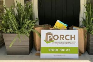 Consider starting a PORCH in your neighborhood. It’s simple! Invite your neighbors to leave a bag of non-perishable food on their front porches once a month. Pick up the donations with a friend (or two!) and enjoy a walk with purpose. Deliver the items to a local food pantry. (PORCH will help you find one nearby.)